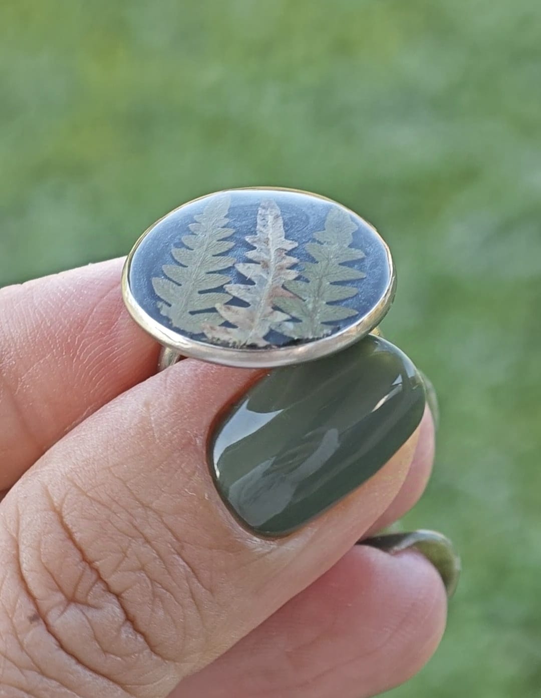 Anillo Único de Resina y Acero Inoxidable con Encapsulado de FENTO NATURAL ( Helecho)