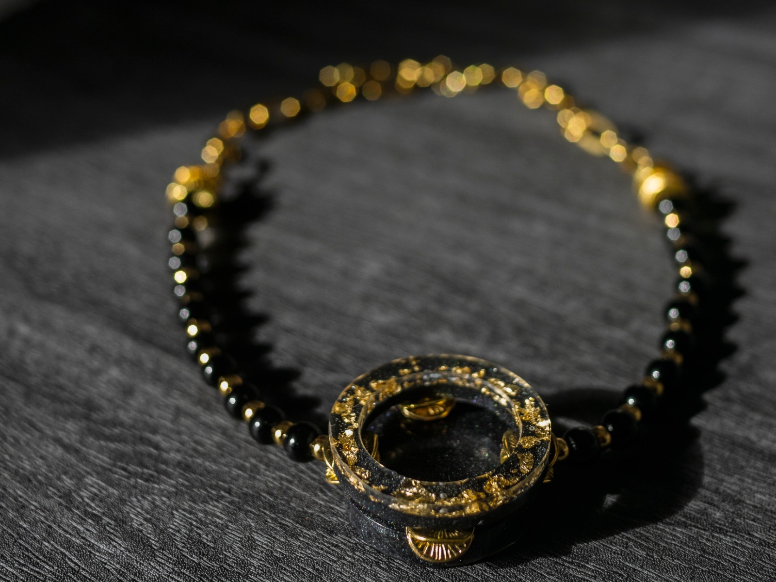La otra mitad del colgante está compuesta por piedras de ónix, conocidas por su belleza y propiedades energéticas. Estas piedras negras aportan un toque de misterio y elegancia al colgante, haciendo que sea perfecto para cualquier ocasión.