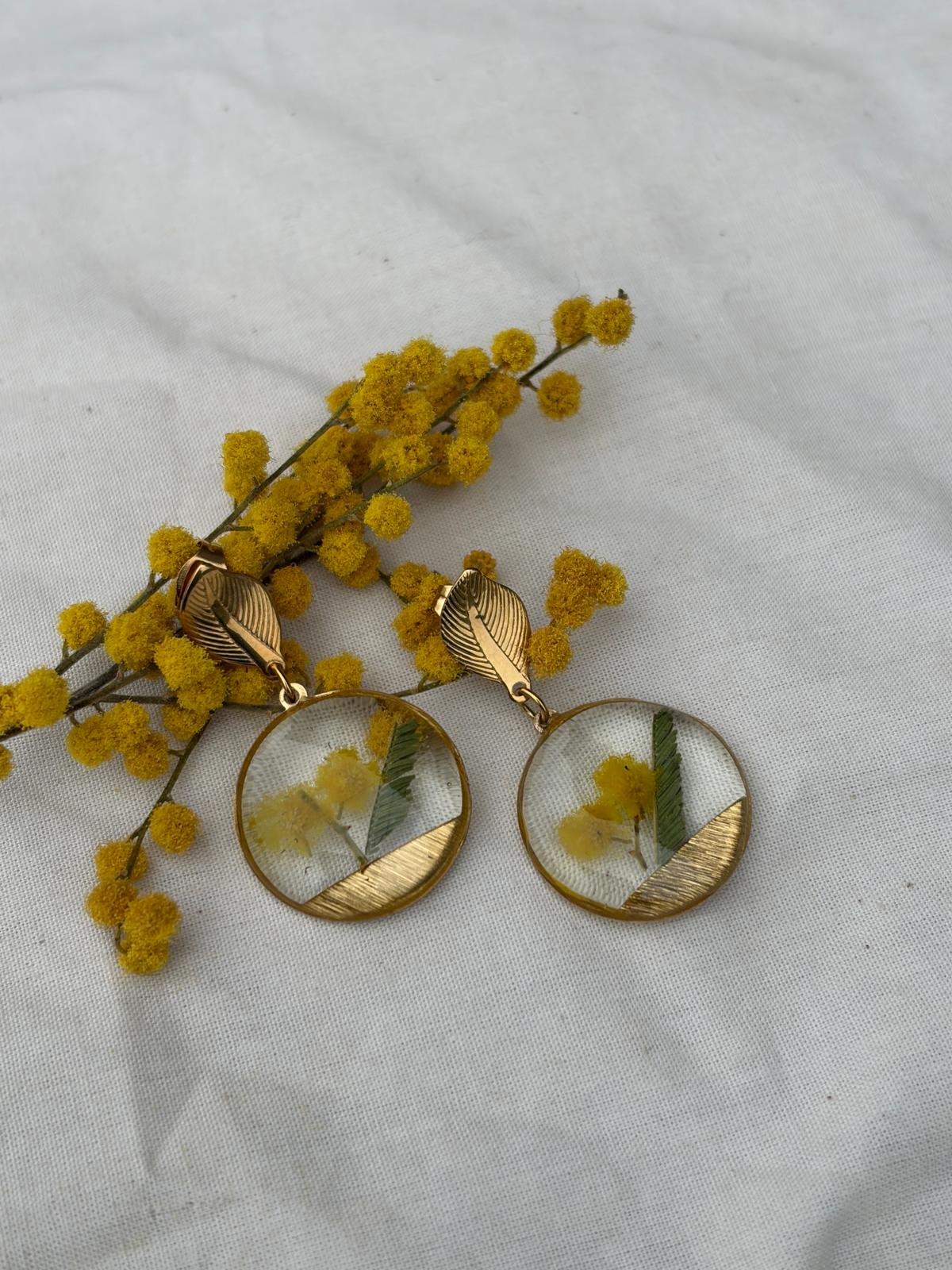 Luce un estilo distintivo y natural con nuestros pendientes de flor de mimosa. ¡Hazte con un par y lleva contigo un pedazo de naturaleza en cada ocasión!