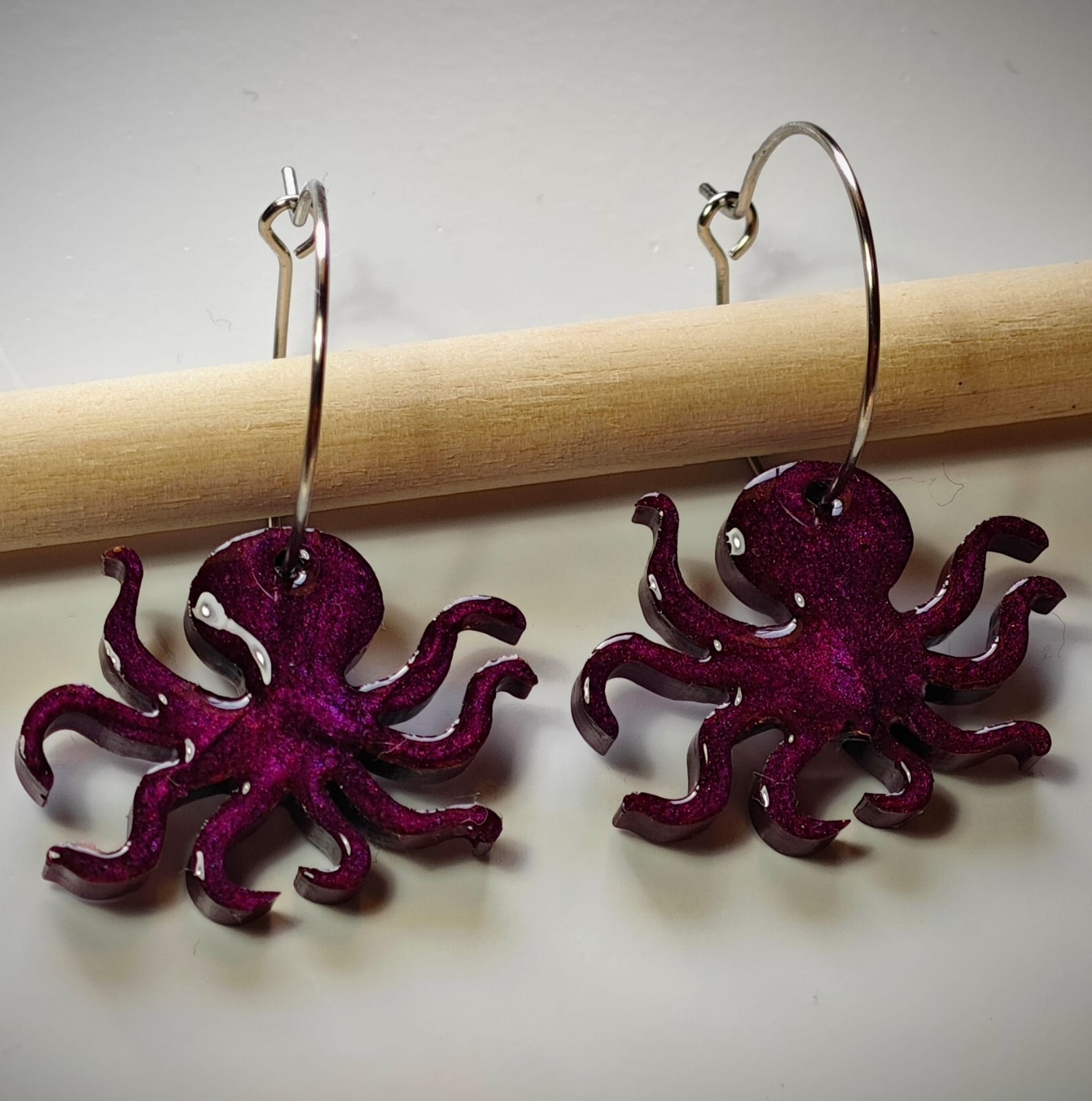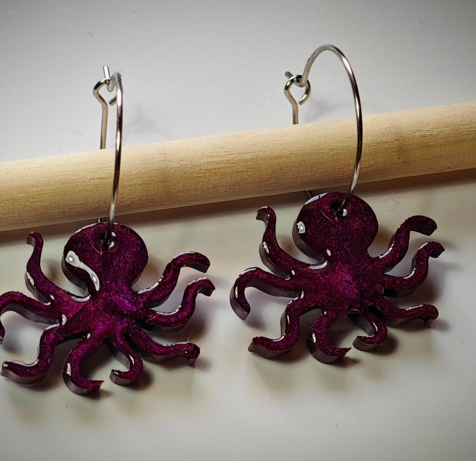 Este Aro es una pieza única y especial, donde el Pulpo en resina hace de él un pendiente original e único.