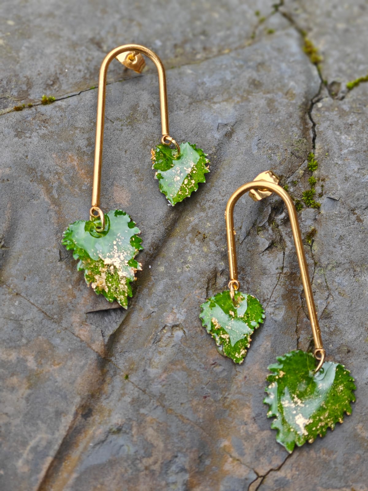 Gracias a su proceso artesanal, cada par de pendientes es único, ya que no existen dos hojas iguales en la naturaleza. Esto convierte cada pieza en una pequeña obra de joyería botánica hecha a mano.